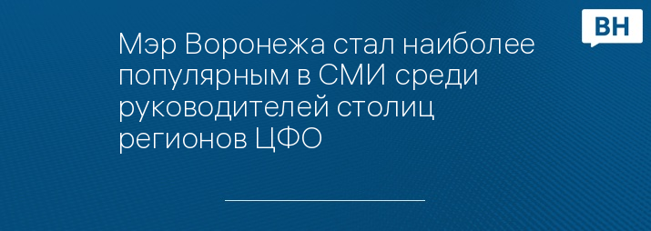 Мэр Воронежа стал наиболее популярным в СМИ среди руководителей столиц регионов ЦФО