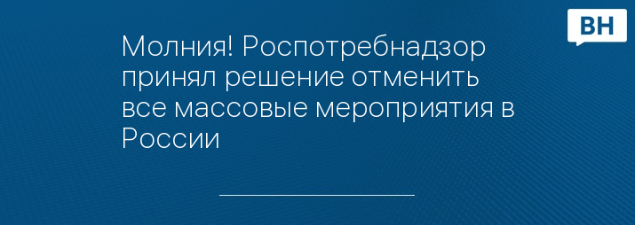 Молния! Роспотребнадзор принял решение отменить все массовые мероприятия в России