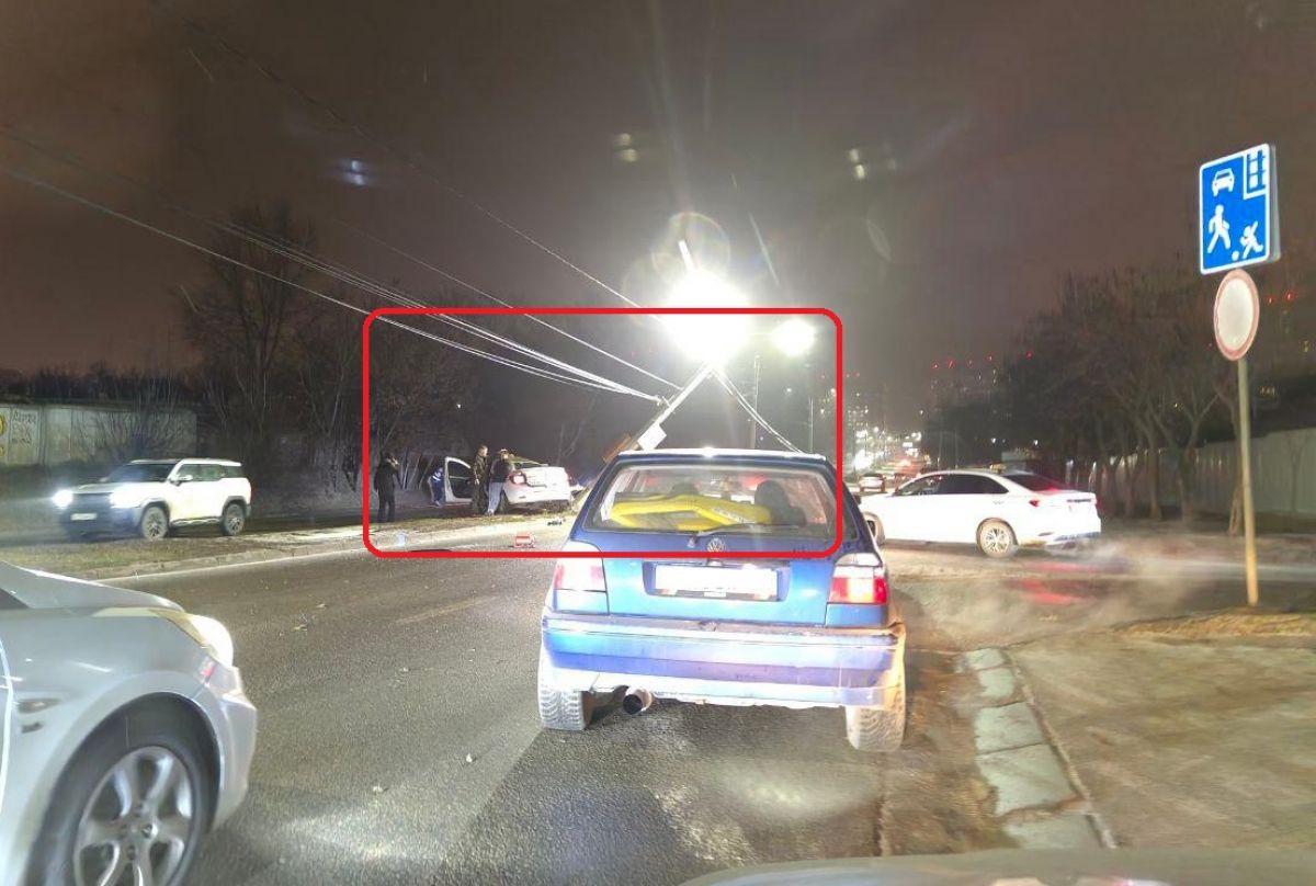 В Воронеже легковушка обрушила опору уличного освещения на дорогу